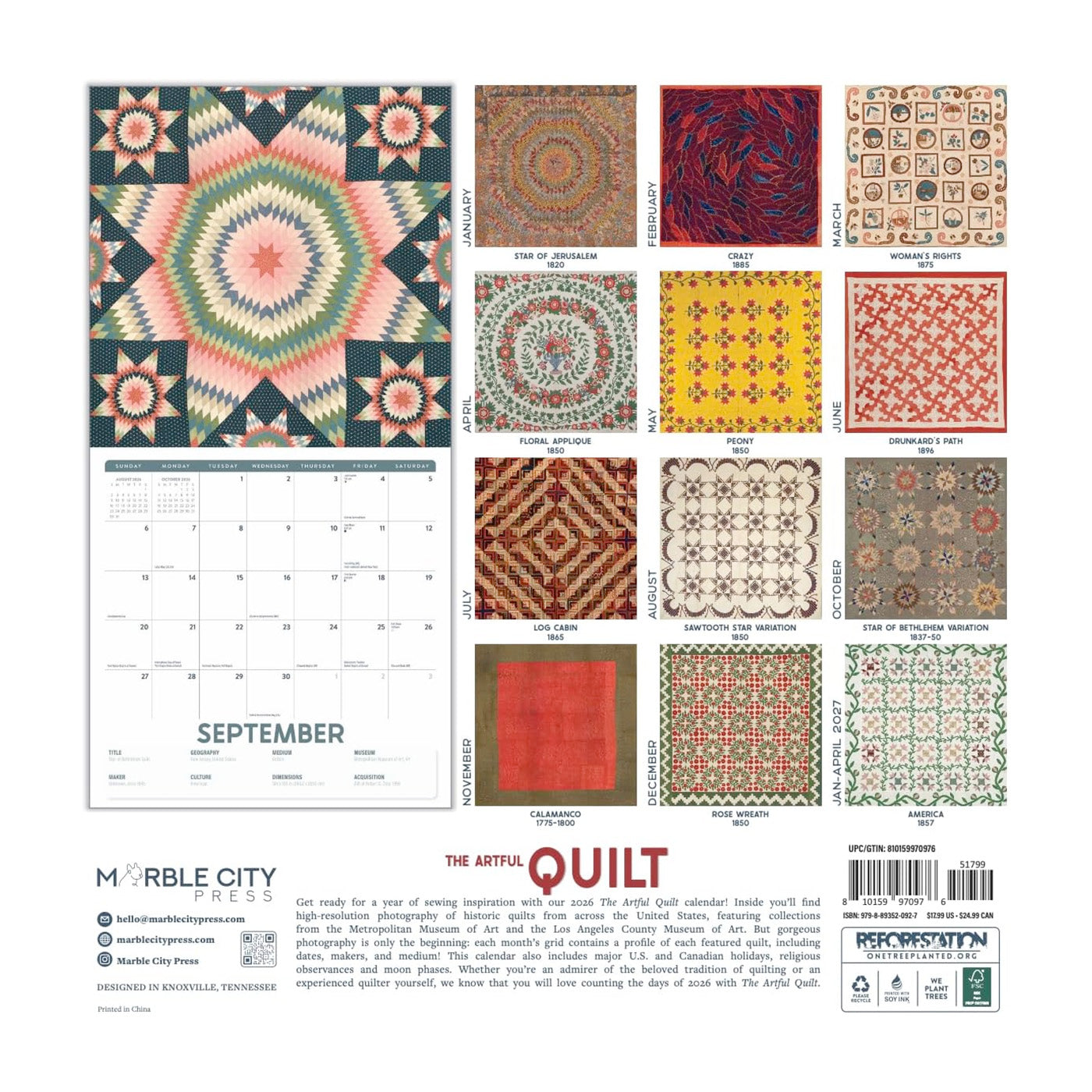 2026 The Artful Quilt 16-month Wall Calendar