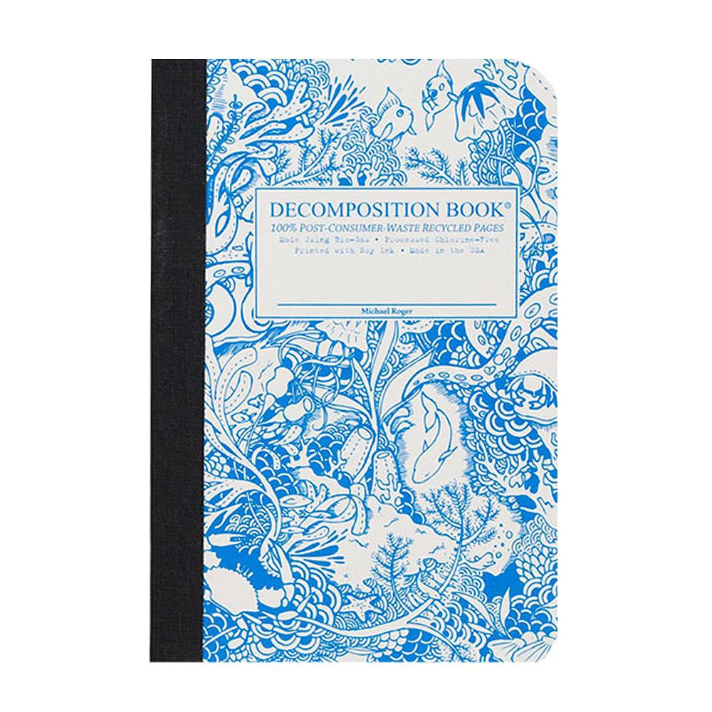 The Decomposition Book is a twist on the classic composition notebook featuring a sewn binding, 100% post-consumer-waste recycled paper and clever cover designs.Sea creatures galore populate this illustration of vibrant life Under the Sea.